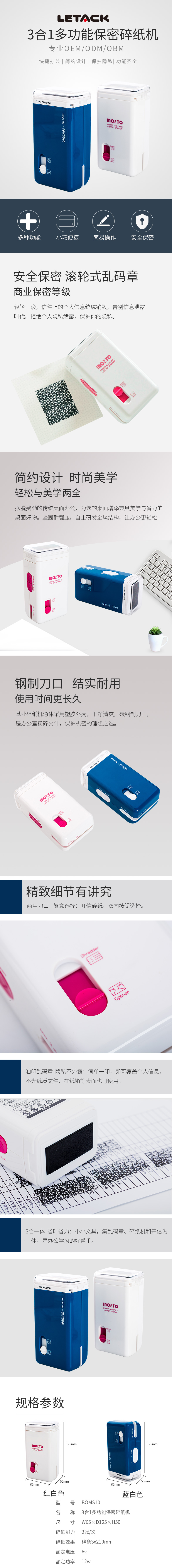 一楽堂BOMS10 3合一多功能保密碎紙機辦公文具迷你電動碎紙機定制...