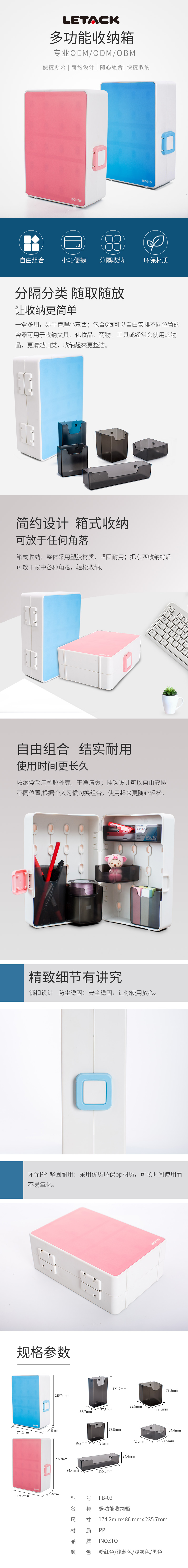 一楽堂FB-02多功能塑料收納盒多格創意辦公桌面整理盒批發定制...