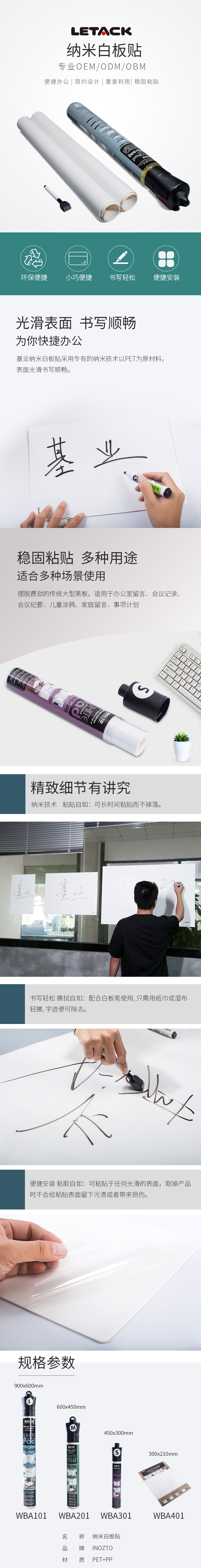 一楽堂WBA401納米白板貼簡約創意記事貼辦公培訓300x210mm白板貼...